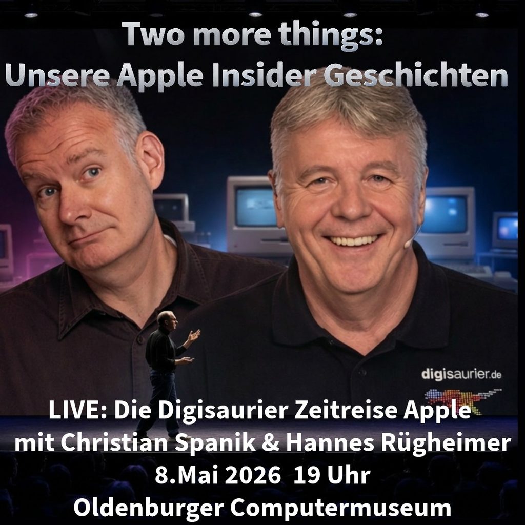 Das Live am 8.5 im @Oldenburger Computer-Museum e.V. ? Das stimmt tatsächlich. DigisaurierOnTour ist das Motto 2026. Aber statt zu singen nehmen @Hannes und ich Euch mit Videos, Fotos und Geschichten mit auf eine Zwei-Stunden Zeitreise durch 50 Jahre Apple.